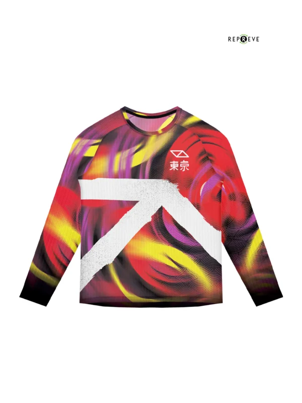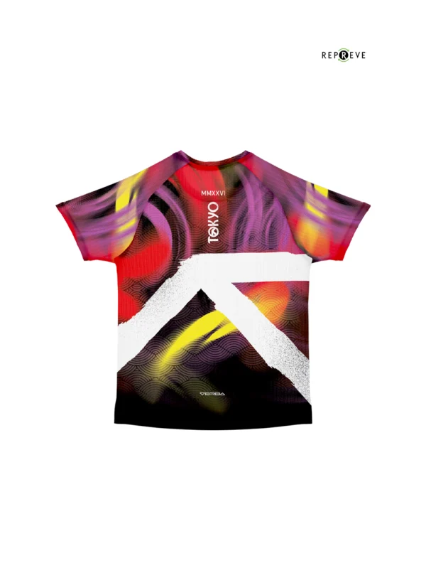 Tokyo 26 Edition City Zen captures the balance of Tokyo at night— where vibrant energy moves alongside quiet focus. This premium jersey is crafted with Repreve® — eco-friendly recycled fibers — and Sorbtek® technology that keeps you cool, dry, and comfortable on every stride. A modern design built for maximum performance, made for runners who move with style and purpose.
